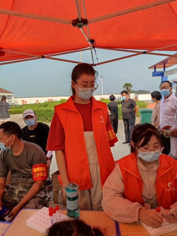 18电子商务本科3班欧佩瑶在得知当地乡政府迅速启动疫情的防护工作后,欧佩瑶同学报名报名参加疫情防控志愿者,积极的响应国家和政府的号召,主动的参与到防疫一线的志愿工作上。因为封村管理,采样点人数太多,面临着巨大的压力与挑战。欧佩瑶同学积极组织居民排好队伍进行核酸检测。帮忙登记、维持秩序,组织留观等助力核酸检测工作顺利开展。