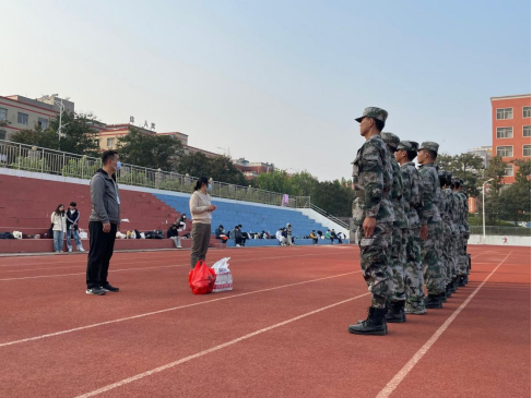 为深入了解2021级新生军训情况,2021年10月21日下午,yl7703永利集团官网行政秘书郗艳花老师及新生辅导员前往运动场,了解新生军训情况,并与军训教官进行了沟通交流。