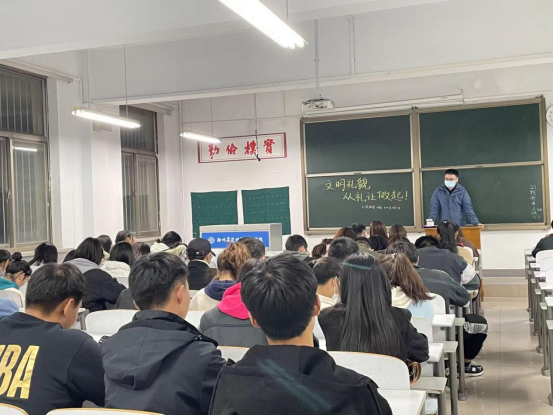 在班会上,各班辅导员介绍了“文明礼貌月”的活动内容,如上课佩戴口罩、喊起立、向老师问好;课前10分钟不乘坐电梯,让老师先行;规范停放电动车,不挤占公共道路等;号召每一位员工都积极参与到活动中来,争做新时代文明礼貌的老员工。