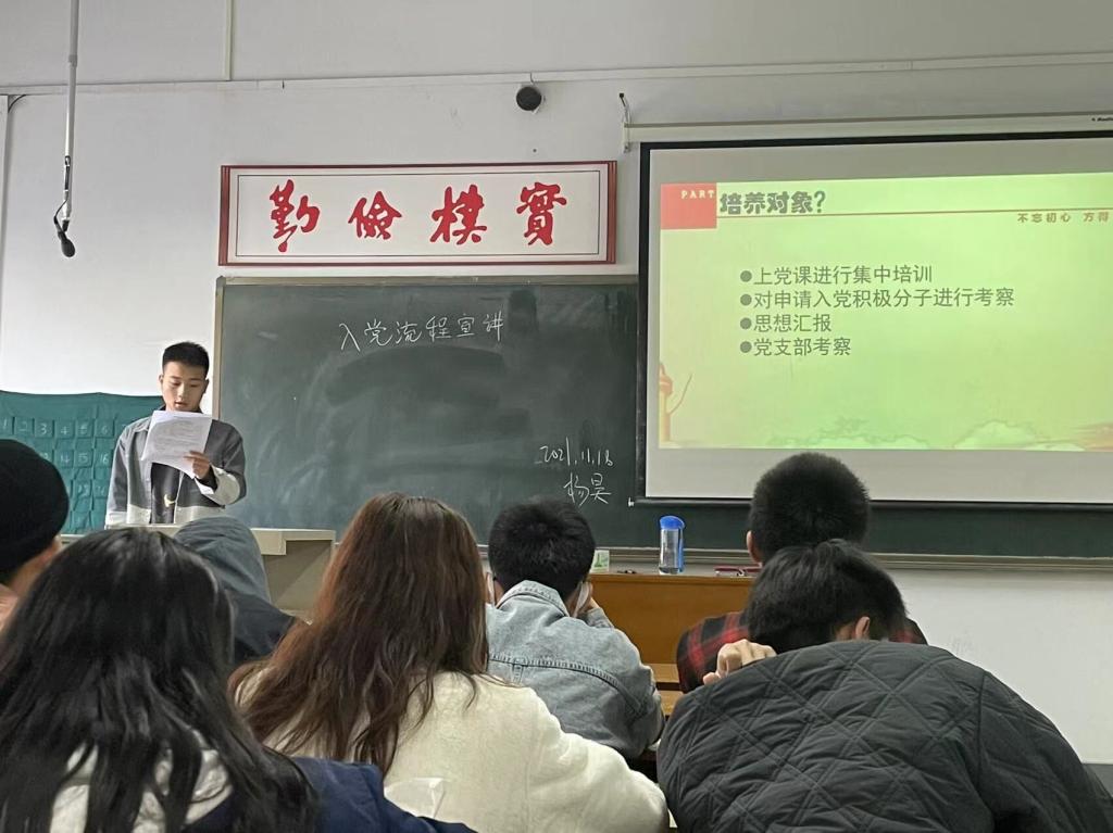 宣讲员深入到2021级本专科新生班中,为1000余名新生详细讲解了入党积极分子的确定、入党积极分子的培养、发展对象的考察和确定、预备党员接收、预备党员的考察及转正党员发展等多个重要环节和时间节点。宣讲中不时穿插以视频、图解等形式,使入党流程生动形象、易于理解。