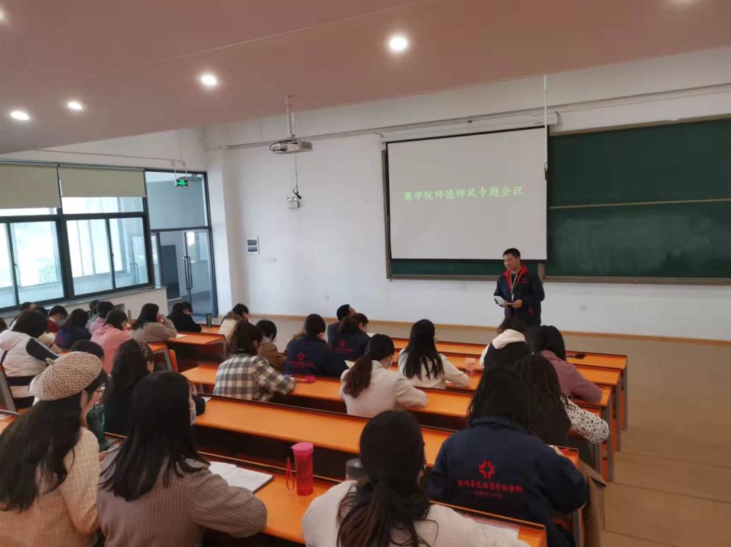 随后,郭峰书记强调,老师要以从事教师职业为荣,以关爱员工健康成长为责,恪守教师职业道德规范。