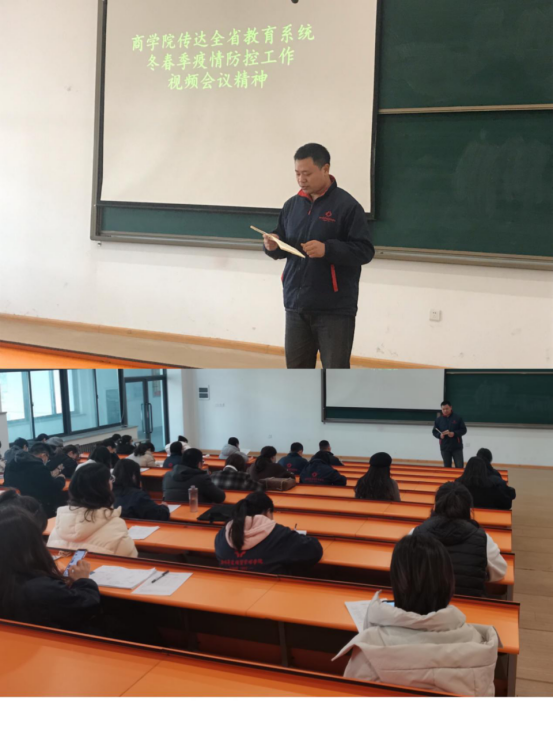 会上,党委书记郭峰向全体教职工传达了全省教育系统冬春季疫情防控工作视频会议精神,要求全院教职员工面对当前复杂严峻的疫情防控形势,要坚决贯彻执行上级的安排部署,直面问题,同心协力,共克时艰。同时,传达了会议上各位校领导的讲话精神和要求。