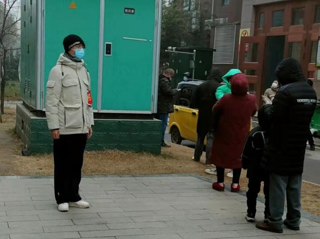 冬日的寒风中,19物本2班的姜钰琦把注册个人防疫二维码的流程重重复复的讲述了上百遍,同时不厌其烦的提醒每一位居民做好安全防护,喉咙喊得沙哑却还是有条不紊的工作着,冷空气的突然来袭并没有让“红马甲”们退缩,疫情就是命令,防控就是责任。