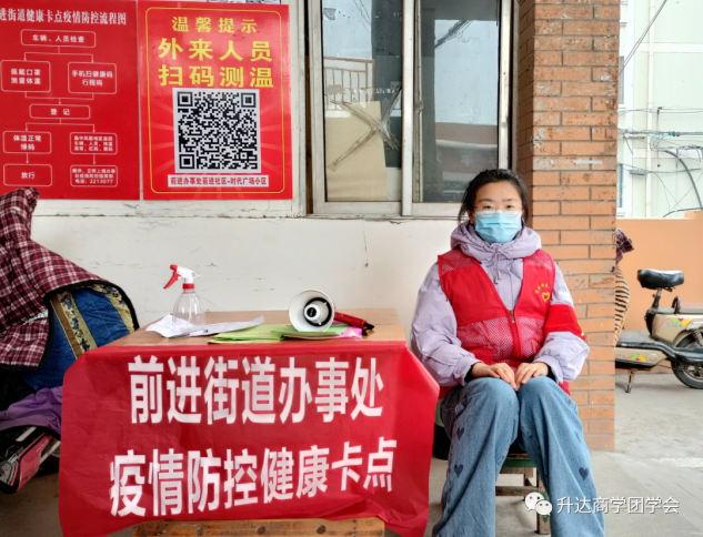 21广本1班的张益嘉说:“很荣幸能够作为志愿者为本次疫情贡献自己的一份力量。”志愿者活动从1月10日开始,张益嘉到梁园区前进街道志愿活动中心报道,参加基础培训,分配了自己的工作范围和工作内容后到活动地点熟悉场地,就开始了防疫工作。