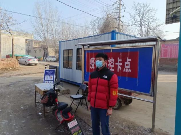 突如其来的疫情,打破了宁静祥和的县城,在疫情发生后的第一时间,政府就迅速做出了应对措施。18级物本1班的董何金积极主动申请加入疫情防控的工作之中,村里的负责人也给他安排了任务,在村里设置的疫情防控卡点值班,对外出的人进行登记,对进村的人进行检查和测量体温。