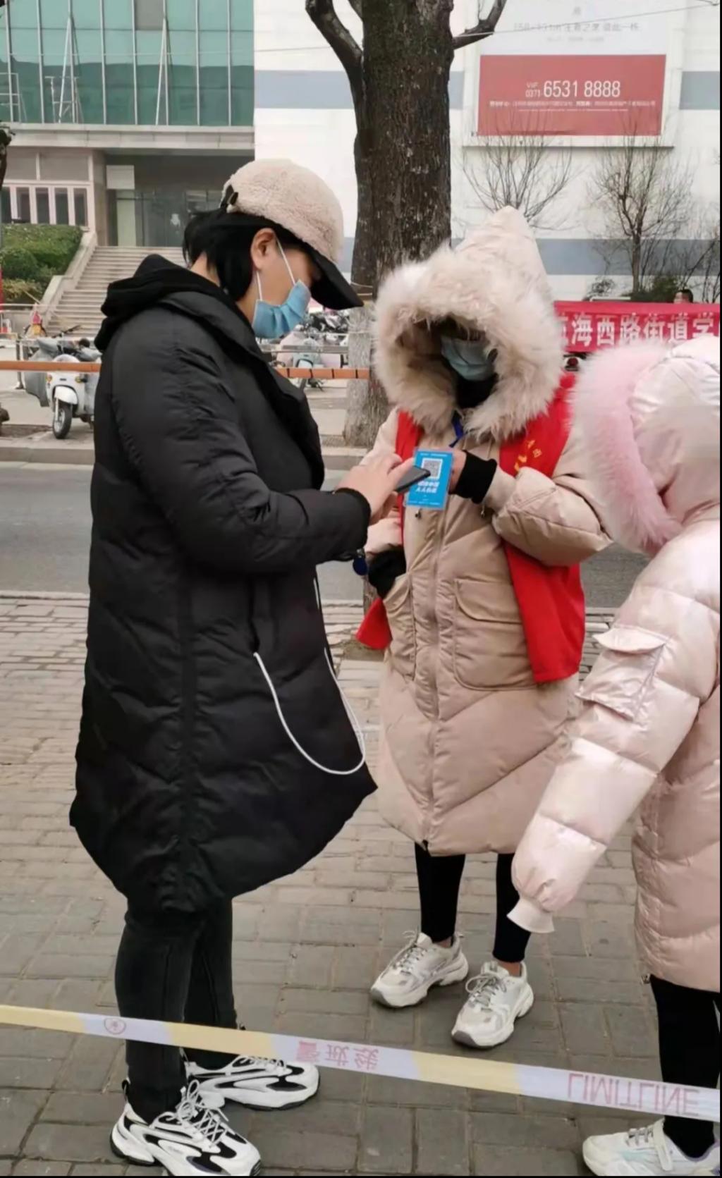 疫情爆发时20级电升本3班的常欣在中原区人社区志愿者服务群看到了招募志愿者的通知,成为了一名防疫志愿者,在1月4日到11日负责了中原区陇海西路街道和社区街道核酸检测点的秩序维持以及帮助居民填报基本信息。