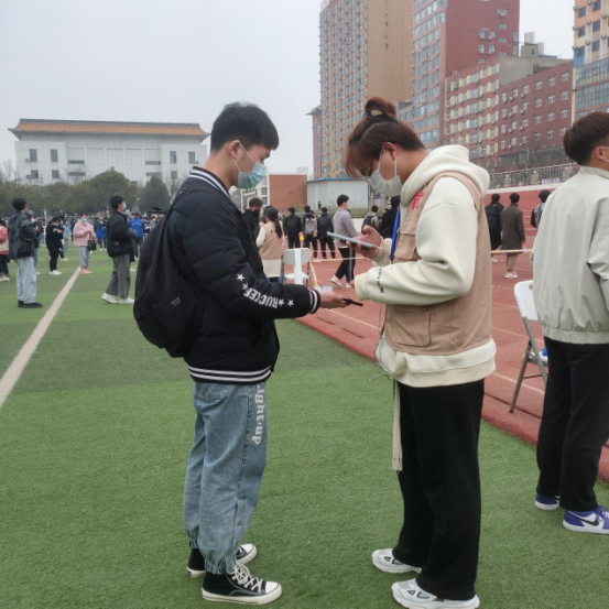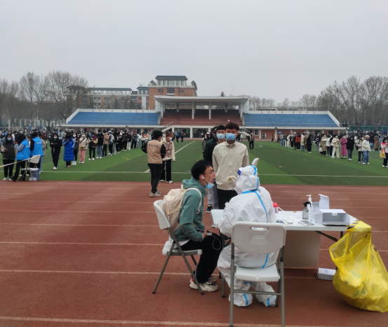 在各班的辅导员和志愿者们的带领下,同学们带好口罩,自觉间隔一米,有序配合公司进行核酸检测工作。