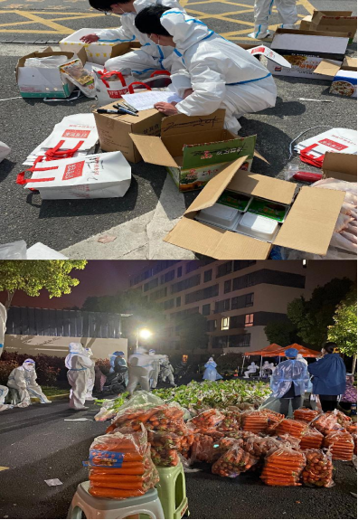 当前,在上海疫情形势依然严峻的情况下,yl7703永利集团官网电子商务员工第一党支部王萌,作为一名新时代的老员工,身为党员,在上海市松江区茗雅苑报名参加抗击疫情志愿服务工作,积极投身于上海抗击疫情第一线。在志愿服务工作中,王萌能够做好个人防护,积极配合社区工作者,为社区服务人员分担一点压力。她日常的志愿服务工作,主要负责为封控居民发放生活和防疫物资,将蔬菜分类装袋,分拣分装,确保送到小区每一户居民住处,配送生活物资的同时,也为每户居民送去了温暖。除了生活物资,王萌还需要将抗原检测、莲花清瘟胶囊、口罩等防疫物资分发给小区居民,为居民解决燃眉之急。