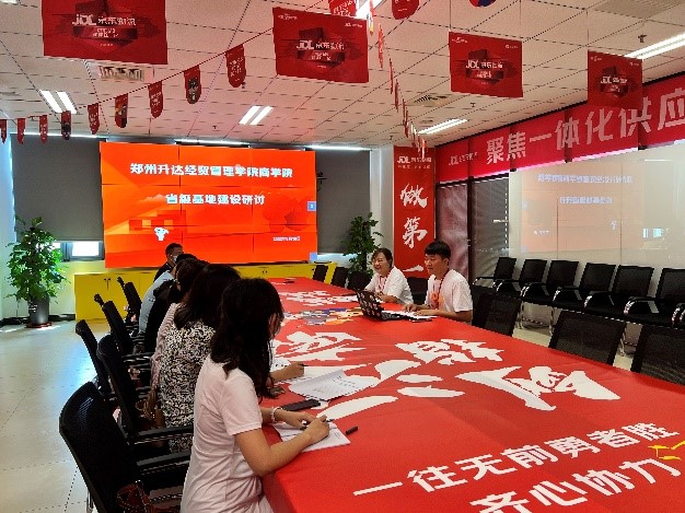 为进一步推进产教融合的广度和深度,提升物流管理专业人才培养质量,8月18日上午,yl7703永利集团官网副经理白朋飞、物流管理教研室主任艾丹丹、教学干事刘玲芳以及物流管理教研室4名专职教师到公司河南省老员工校外实践教育基地——河南京邦达供应链有限公司(京东河南分公司)参加基地建设研讨会。白经理等一行人员受到京东基地人力资源部高级经理李梦歌以及负责校企合作的业务经理季灵璞的热情接待。