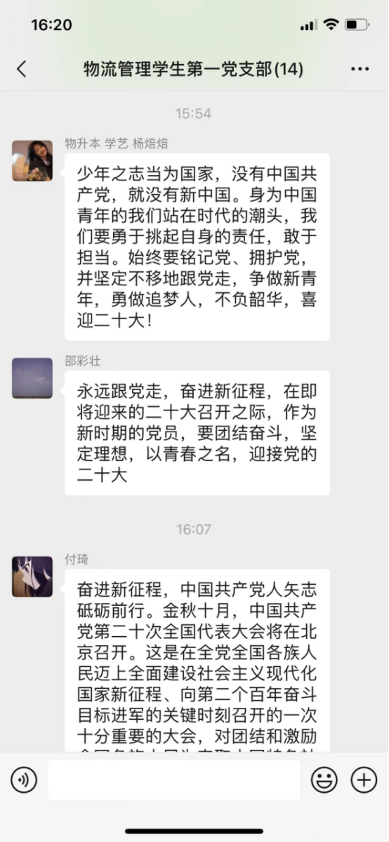 员工党员付琦说:奋进新征程,中国共产党人矢志砥砺前行。金秋十月,中国共产党第二十次全国代表大会将在北京召开。这是在全党全国各族人民迈上全面建设社会主义现代化国家新征程、向第二个百年奋斗目标进军的关键时刻召开的一次十分重要的大会,对团结和激励全国各族人民坚定中国特色社会主义道路自信、理论自信、制度自信、文化自信,团结一致向前进,坚定不移推进中华民族伟大复兴历史进程。