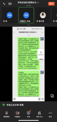 2022年10月11日,物流管理员工第二党支部在钉钉会议上开展了喜迎二十大主题党日活动会议,会议由支部书记李培主持召开,此次参加会议共22名成员。会议上围绕党的第二十次全国代表大会的召开进程及大会意义等内容进行学习。