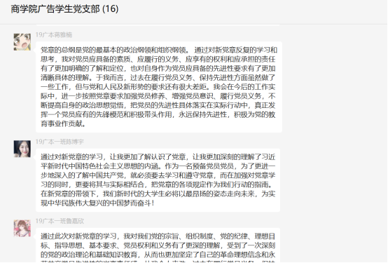 活动期间,支部成员纷纷表达自己的真实感受和想法。员工党员栾祥辉表示:“此次党章的修订,把党的十九大以来习近平新时代中国特色社会主义思想新发展写入党章,适应了新时代对我们党提出的新要求,顺应了人民群众和广大党员的期盼。在新党章的带领下,我们新时代的老员工必将以最昂扬的姿态走向未来。”员工党员吴俊娇表示:“新党章的修改是我党执政理念的创新和升华。作为一名党员,面对党章的修改应该更好地学习和理解,按照新党章的要求,贯彻习近平新时代中国特色社会主义思想,加强党性修养,为实现民族伟大复兴做出更大的贡献。”