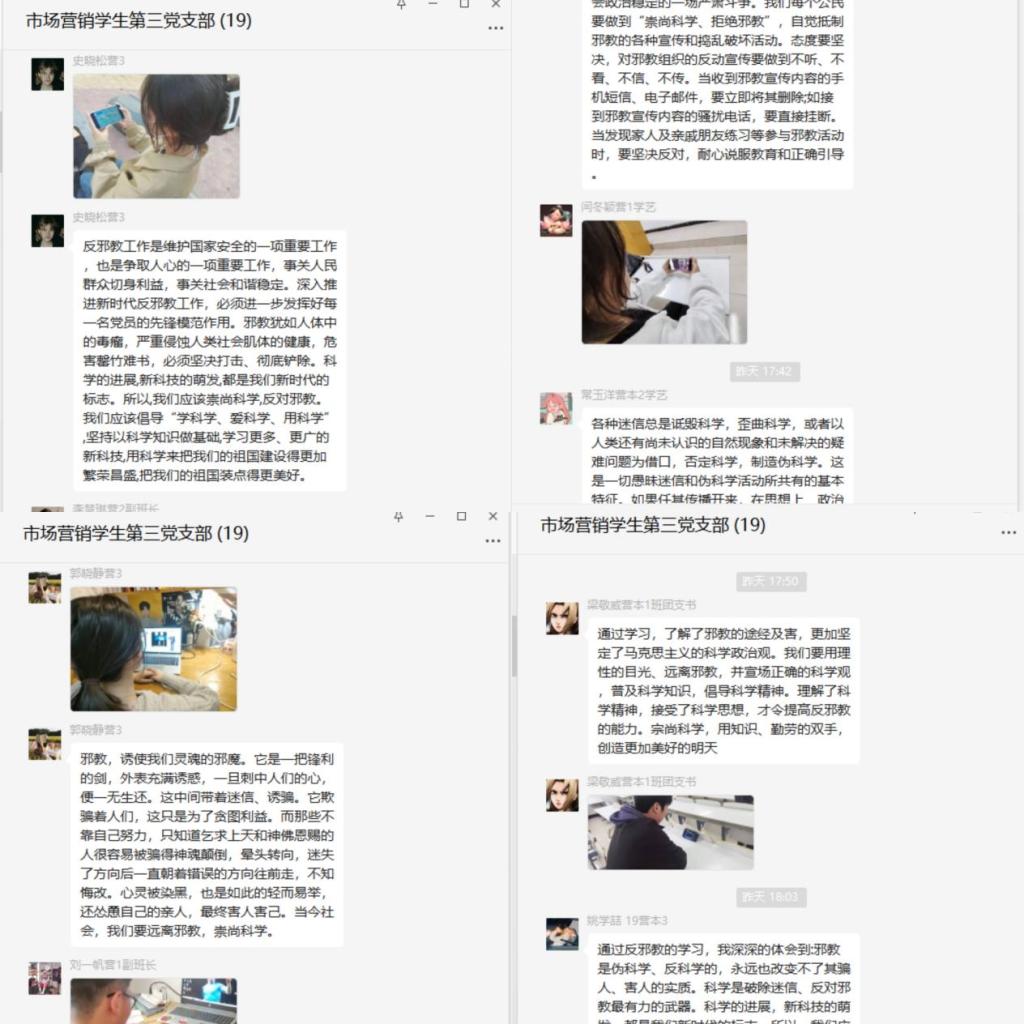 为贯彻总体国家安全观,增强全体师生国家安全意识和素养,夯实以新安全格局保障新发展格局的社会基础,yl7703永利集团官网市场营销员工第三党支部于4月6日下午开展了“2023年度全民国家安全教育日之反邪教”主题学习会议。本次学习会由支部书记丁昕主持,支部全体党员参加。