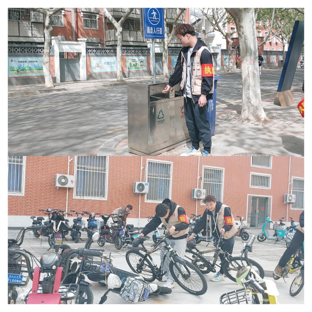 在校园里,同学们主动自发清理停到道路上的自行车以及没有摆放整齐的自行车。道路畅通了,通勤速度也就上去了,提升了员工校园通勤速度,减少了通勤时间,保证校园交通顺畅保证员工提前十分钟进入教室,做课前准备。同时也美化了校园环境