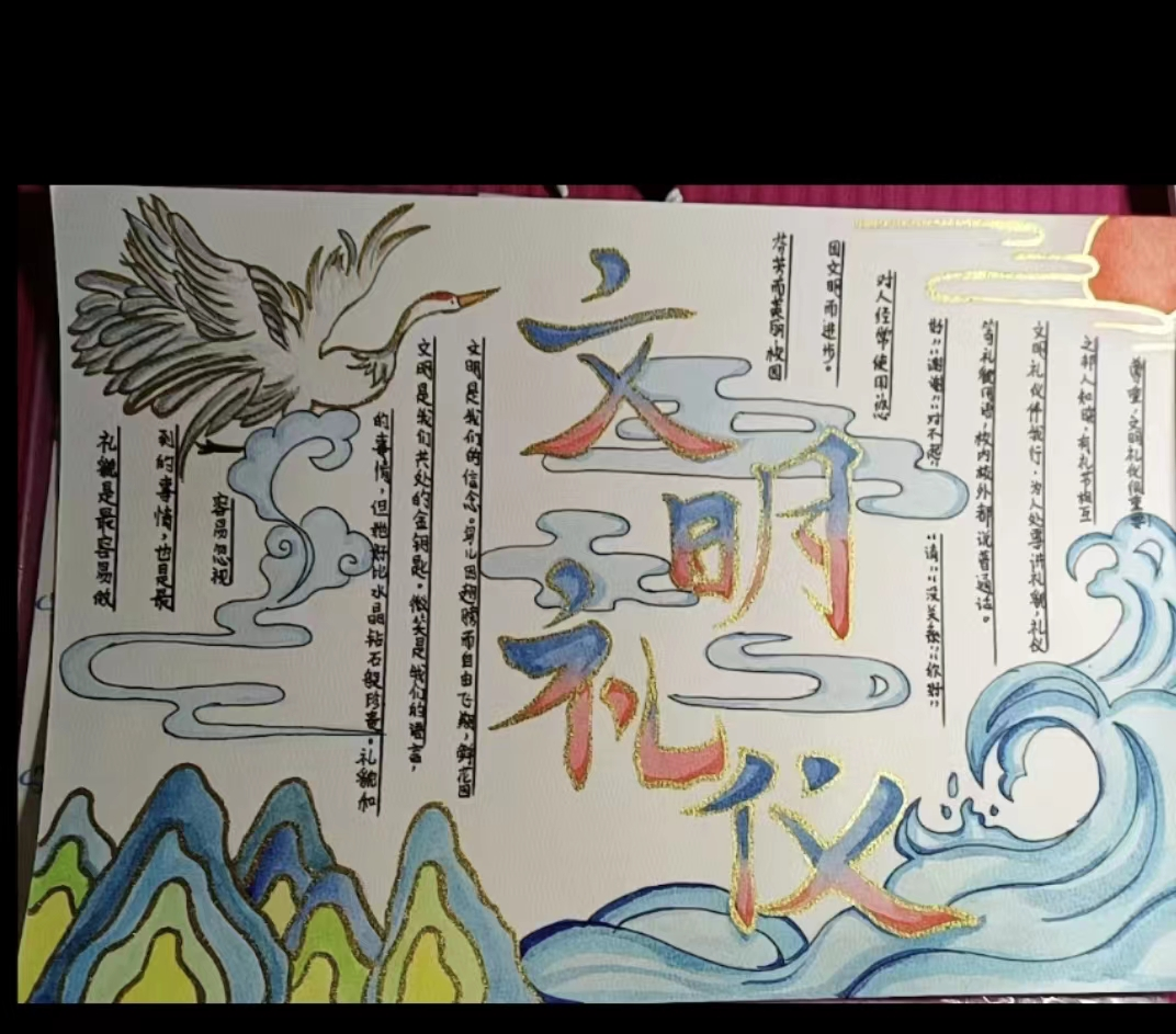在课余时间,组织员工开展绘画“文明礼貌我践行”手绘报的活动。通过员工手绘报的展示,广泛宣传文明礼仪等。