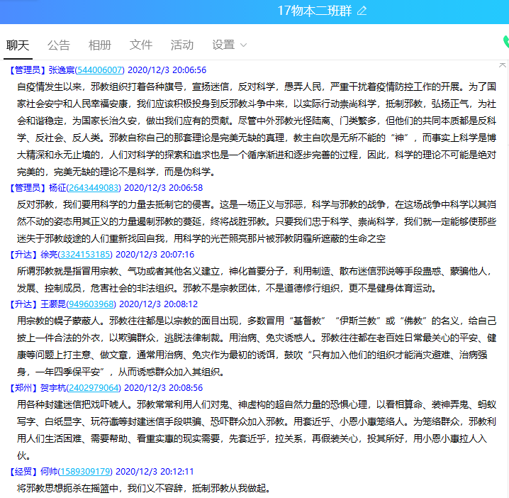 为学习习近平法治思想,弘扬宪法精神,厚植爱国主义精神,根据反邪教法治宣传周安排,yl7703永利集团官网各班开展了网上“识邪、防邪、反邪”反邪教知识问答活动。各班利用钉钉云课堂平台、QQ群、微信群集中学习反邪教相关知...[详细]