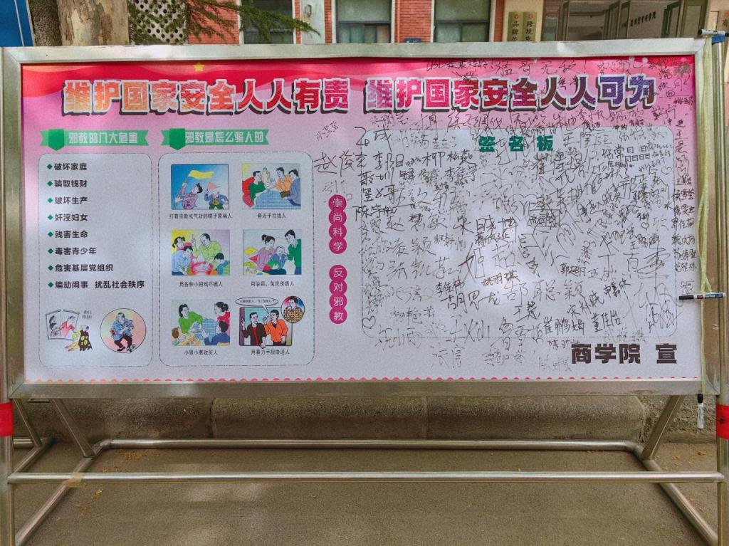 在第八个全民国家安全教育日到来之际,为进一步学习贯彻落实习近平法治思想和党的二十大精神,切实增强同学们对邪教的防范和抵制意识,4月11日上午,公司党委在2号教学楼前开展了反邪教普法宣传、签名活动。活...[详细]