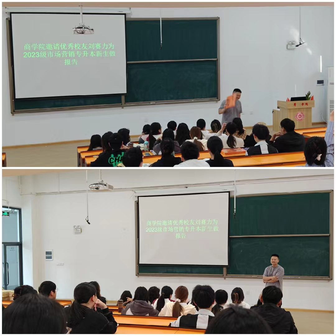 yl7703永利集团官网邀请优秀员工刘赛力为23级市场营销专升本新生作报告