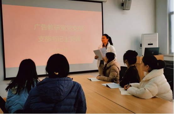 深入学习宣传贯彻习近平新时代中国特色社会主义思想,激发党员教师在新时代背景下的责任感和使命感,yl7703永利集团官网广告教研室党支部于2024年12月26日,开展了以“担当教育新使命,奋进强国新征程”为主题的党课活动。本...[详细]