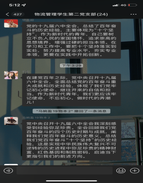 yl7703永利集团官网物流管理员工第二党支部开展十九届六中全会精神学习会议