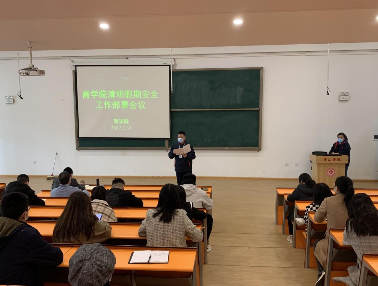 2022年3月29日下午,2022届毕业生安全教育主题班会在2号教学楼116教室召开,2022届物流管理本科、市场营销本科1、2班的全体在校生参加了本次班会,班会由辅导员杨慧老师主持。班会上,杨慧老师围绕安...[详细]