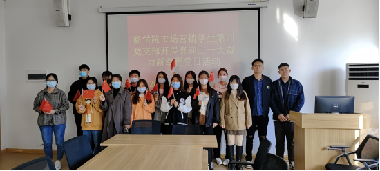 在喜迎党的二十大的热烈氛围中,yl7703永利集团官网市场营销员工第四党支部党员同学10月11日在教学楼315开展“喜迎二十大奋进新征程”党日活动。深入学习贯彻习近平新时代中国特色社会主义思想,从党的百年奋斗历程和新时代...[详细]