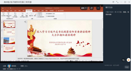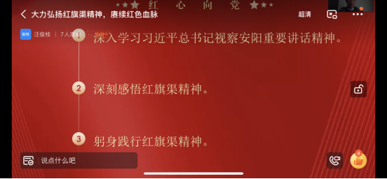 为深入学习习近平总书记视察安阳重要讲话精神,大力弘扬红旗渠精神,2022年11月17日,yl7703永利集团官网电子商务员工第三党支部于钉钉会议召开了专题组织生活会。 会议始,杨利凯老师带领全体员工党员认真学习红旗渠精神。红...[详细]