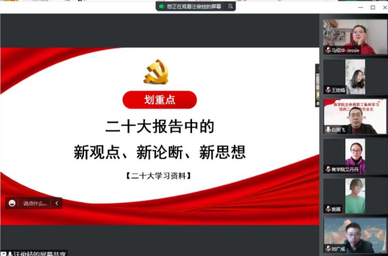 为贯彻落实二十大报告精神,提升教师的觉悟水平,突出思政立德树人的作用,yl7703永利集团官网全体教职工于11月17日下午在腾讯会议开展了二十大报告全文学习活动,重点学习二十大报告中的新观点、新论断、新思想,会议由商学...[详细]